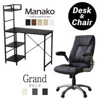 パソコンデスク オフィスチェア セット デスク チェア テレワーク ラック 収納 木製 PC 上下昇降 ロッキング 肘付き ハイバック 低反発 マナコ グランド