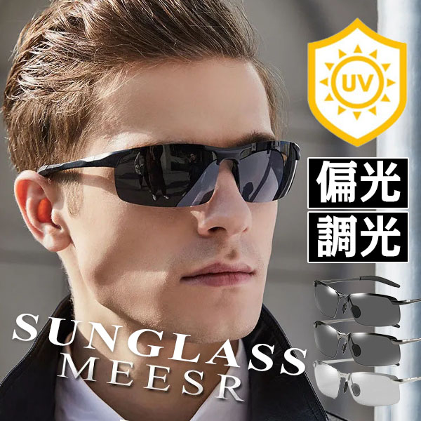スポーツサングラス メンズ 偏光 調光 UVカット 紫外線 小顔 美顔 スポーツ用品 ゴルフ用品 アウトドア 登山用 運転用 ゴルフサングラス お釣り ランニング
