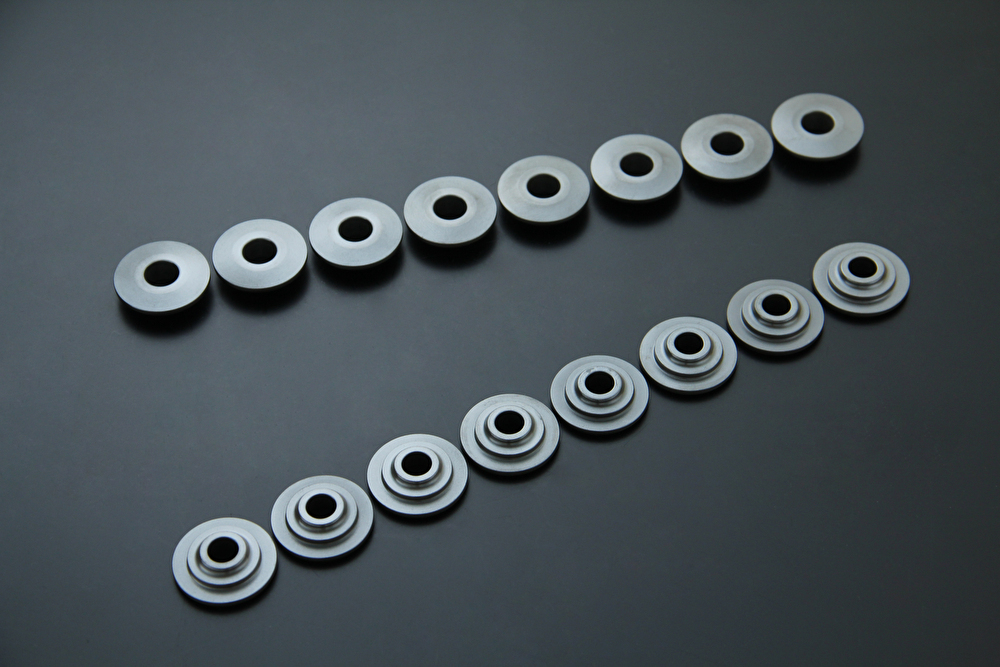 TOMEIチタンバルブリテーナーは質量軽減のためにチタン材を採用し、さらにはバルブ・バルブスプリングを確実に保持する高い強度と精度を与え、