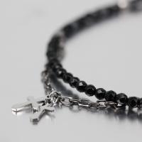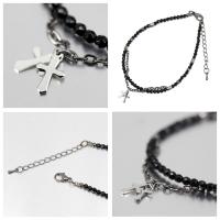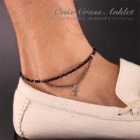 メンズ アンクレット ブラック オニキス シルバー ステンレス 人気 2連 ダブル クロス 十字 チェーン アンクレット カッコイイ 足首 ミサンガ