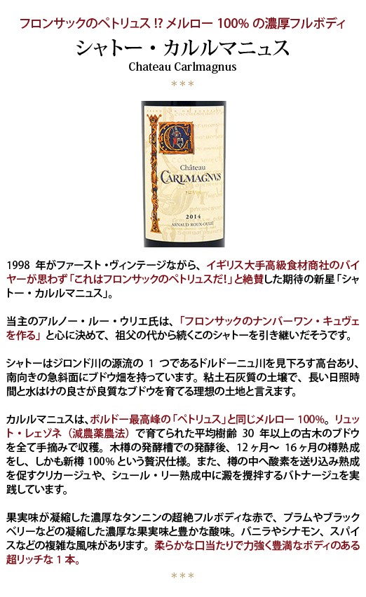 2021 シャトー カルルマニュス 750ml フロンサック フランス 赤ワイン コク辛口 ワイン ^ANSU0121^