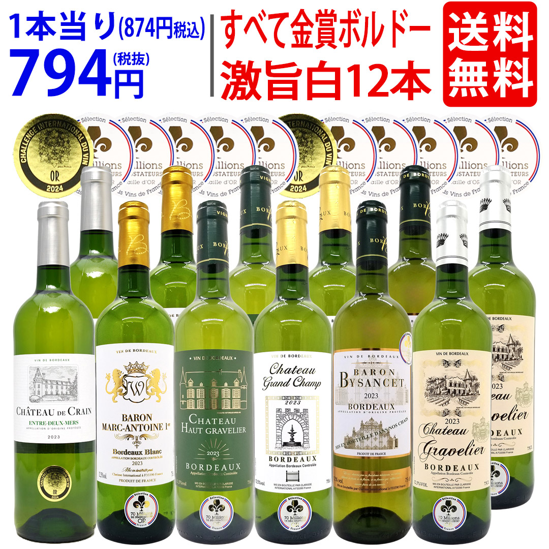 ワイン ワインセット すべて金賞 フランス名産地ボルドー辛口白激旨12本セット (6種各2本) 大人気 ^W0DK65SE^