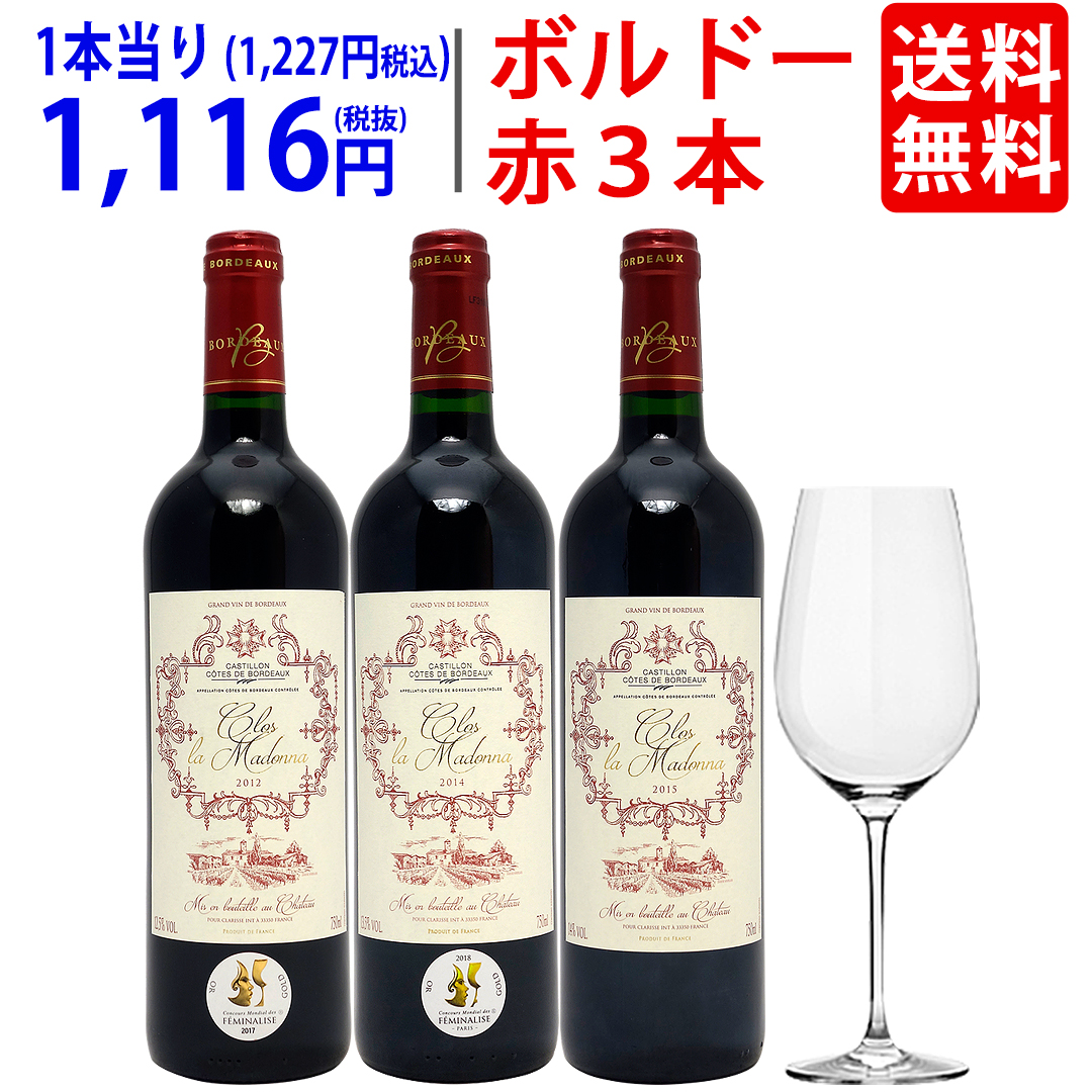 ワイン ワインセット G&Cクリスタルグラスプレゼント!3ビンテージ飲み比べボルドー赤3本セット 送料無料 ギフト 大人気 ^W0VK25SE^