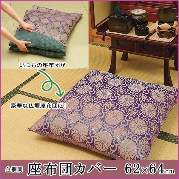 座布団カバー 仏壇座布団カバー カバー 座布団 法事 お坊さん 仏前 御前 仏壇前 金襴調 62×64cm カバー お寺さん 仏具 仏壇 法事