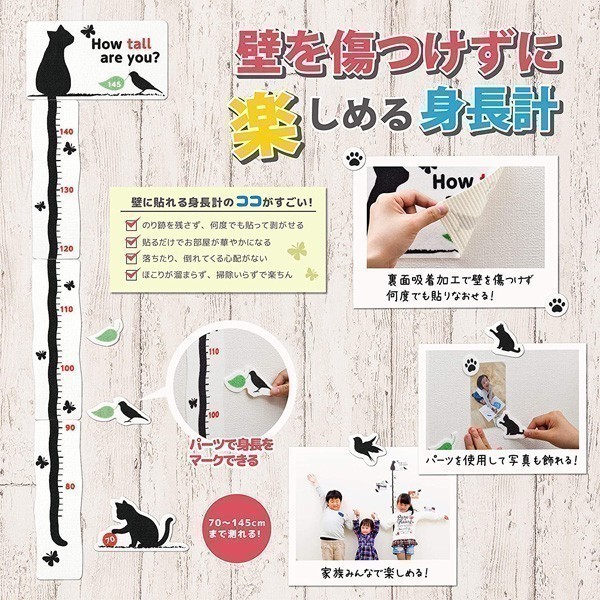 身長計 ウォールステッカー 子供部屋 子ども 身長 記念 女の子 男の子 壁シール 測れる 可愛い キッズ 幼稚園 幼児 壁飾り 子供 身長測定 シンプル 防水 爆買