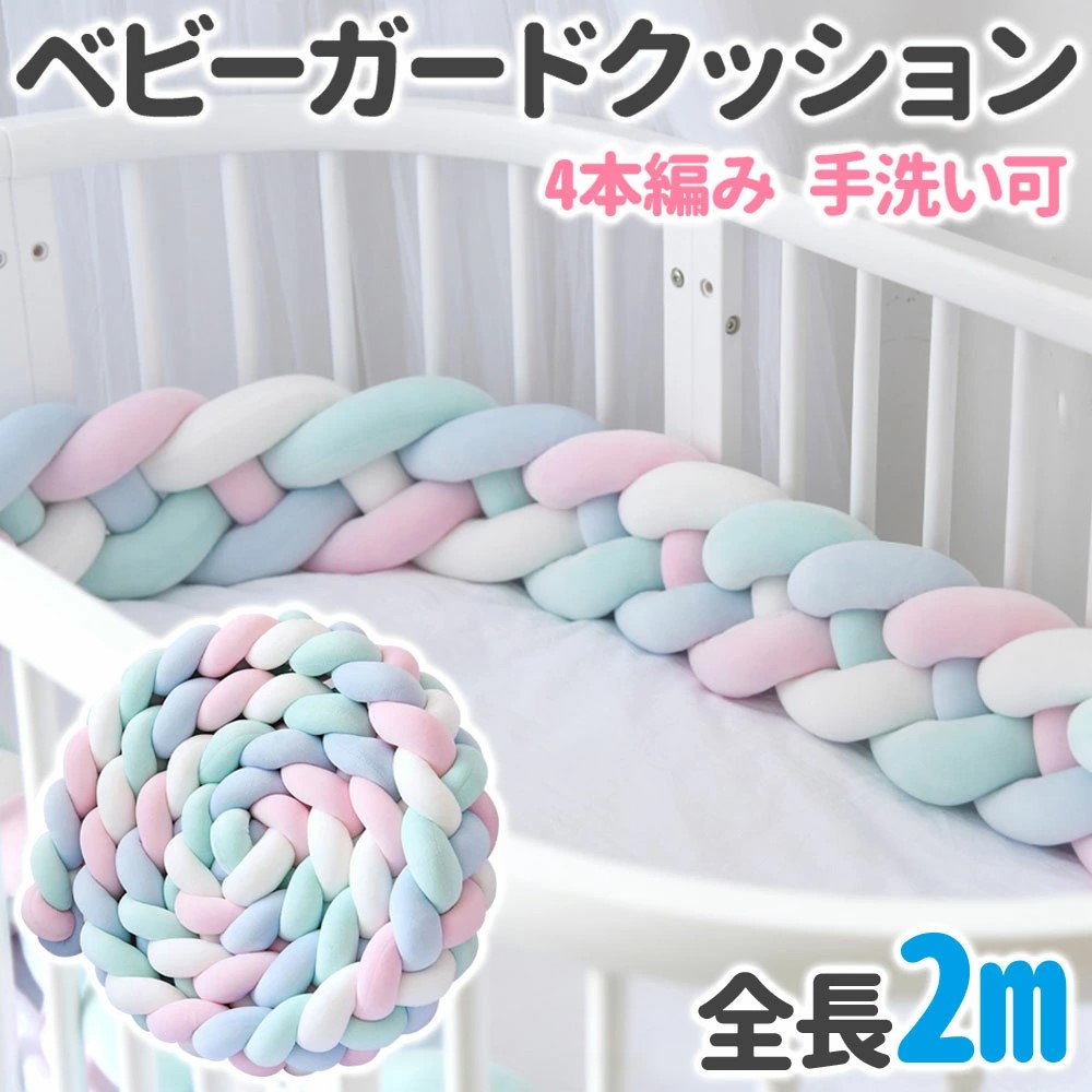 ベビーベッドガード 赤ちゃん クッション ベッドガード 転落防止 ベビーベット 寝返り防止クッション ノットクッション 寝返り防止 サイドガード 2m 4本編み