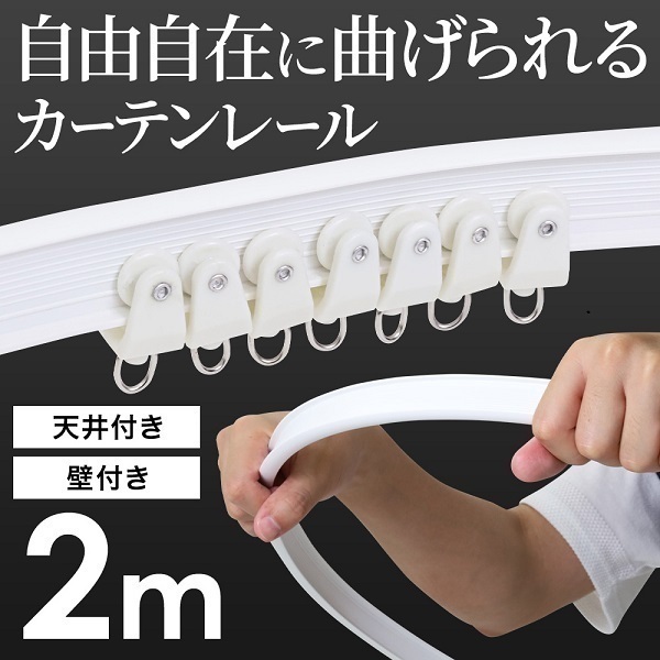 カーテンレール 曲がる シングル 曲がるカーテンレール エンドキャップ 2m カーブレール カーテン 車用 コーナー DIY 壁付け 天井付け カーテンレール天井付け