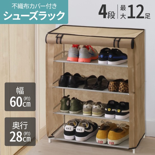 シューズラック スリム 小さめ 靴棚 縦長 4段 カバー付き おしゃれ 省スペース 下駄箱 靴箱 新生活 シューズボックス 靴 収納 カバー スリッパラック 長靴