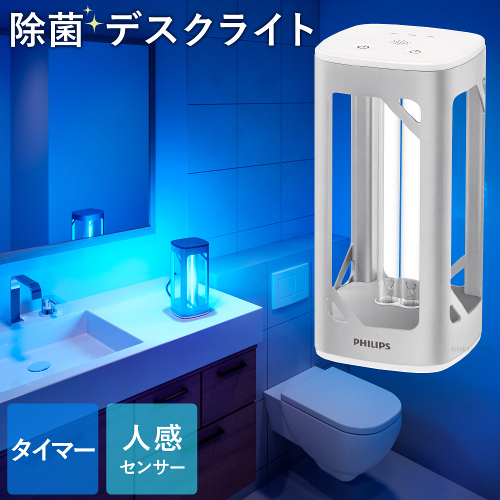 Philips フィリップス UVC 除菌ライト 紫外線 除菌 ランプ 除菌灯 家庭用細菌 業務用 オフィス 店舗 飲食店 除菌効果 安全センサー付き シルバー