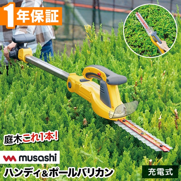 ヘッジトリマー 充電式 剪定バリカン 電動 充電 2way 高所 ムサシ ハンディバリカン ポールバリカン 充電式 2WAY 草刈り機 コードレス 剪定 PL-5002