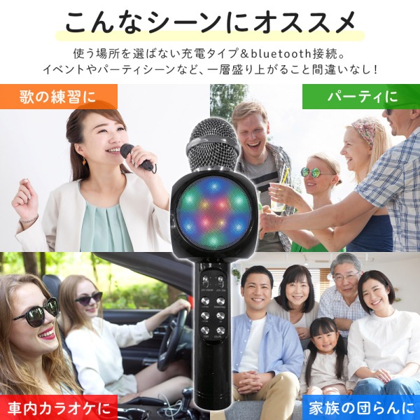 カラオケマイク bluetooth 充電式 カラオケ マイク Android iOS 家庭用 ひとりカラオケ ポータブルスピーカー ワイヤレスマイク スマートフォン タブレット