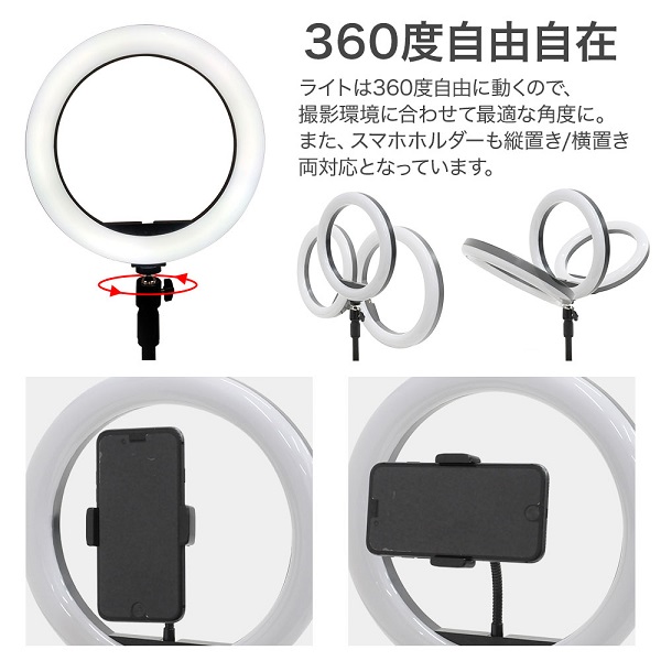 ライトは360度自由に動くので、撮影環境に合わせて最適な角度に調節可能です。