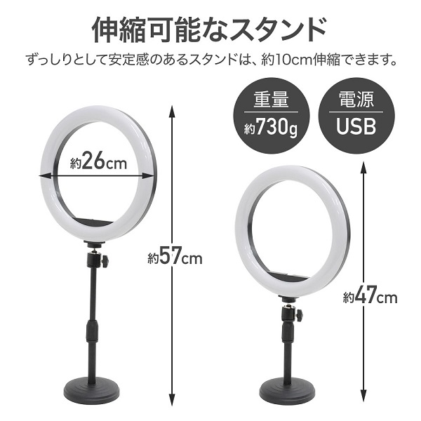 ずっしりとして安定感のあるスタンドは、約10cm伸縮できます。