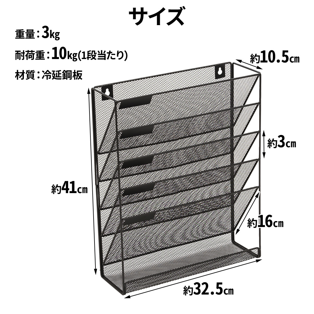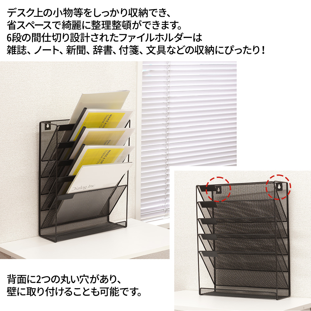 壁掛け 書類 収納 卓上 書類棚 収納ラック 書類ラック 6段 ファイルラック 書類トレー 多機能 新聞 雑誌 文房具 A4 ファイル フォルダー ホルダー 机上