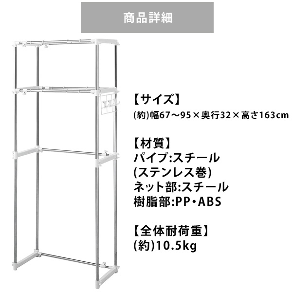 洗濯機の上 収納 洗濯機ラック 一人暮らし ランドリーラック 収納ラック 収納棚 2段 洗濯機 ラック おしゃれ 伸縮 幅67〜95cm 洗濯機収納 収納 N-7565