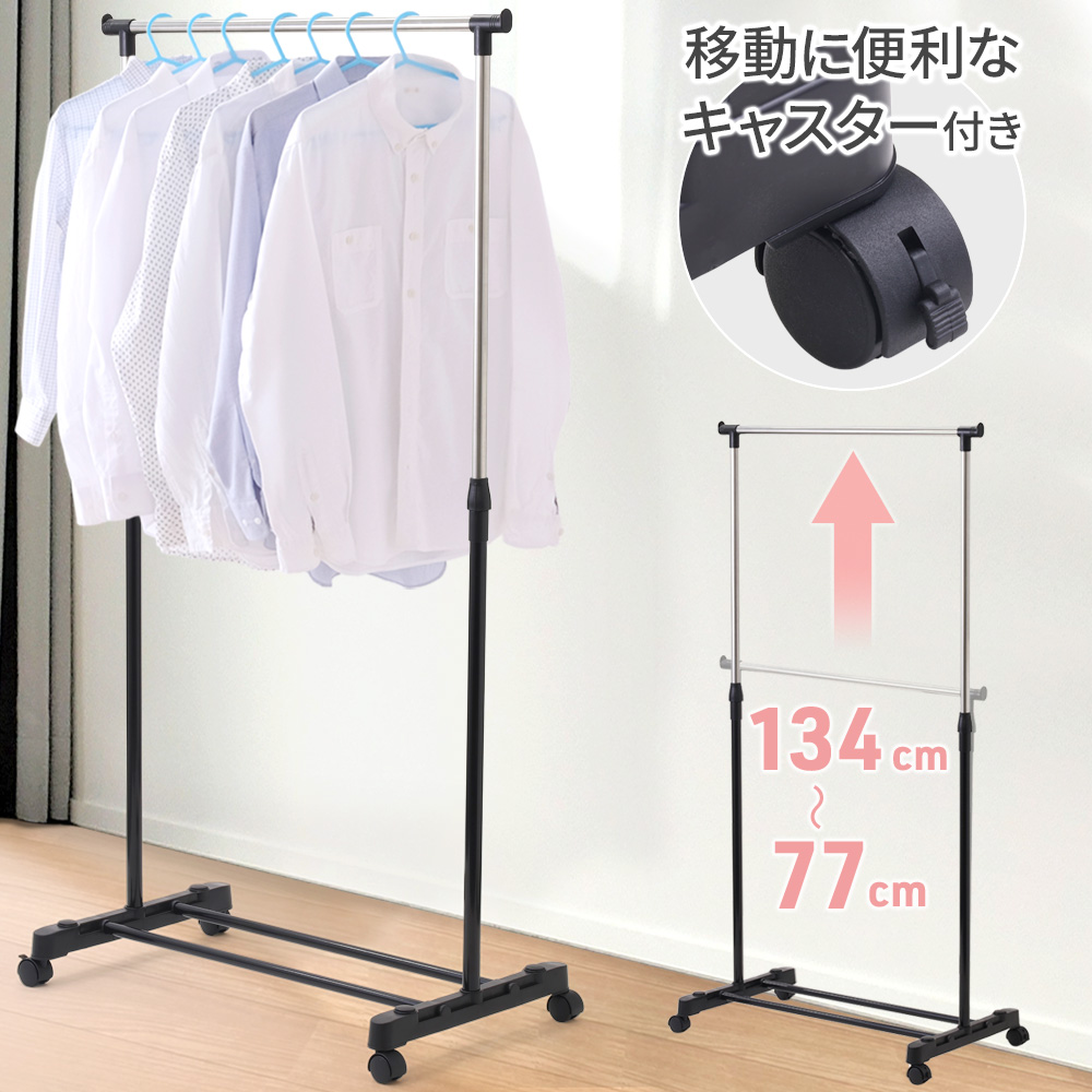 パイプハンガーラック 伸縮 ハンガーラック パイプハンガー シングル スリム 洋服掛けラック伸縮 キャスター付き 高さ調節 室内物干し 室内干し 頑丈