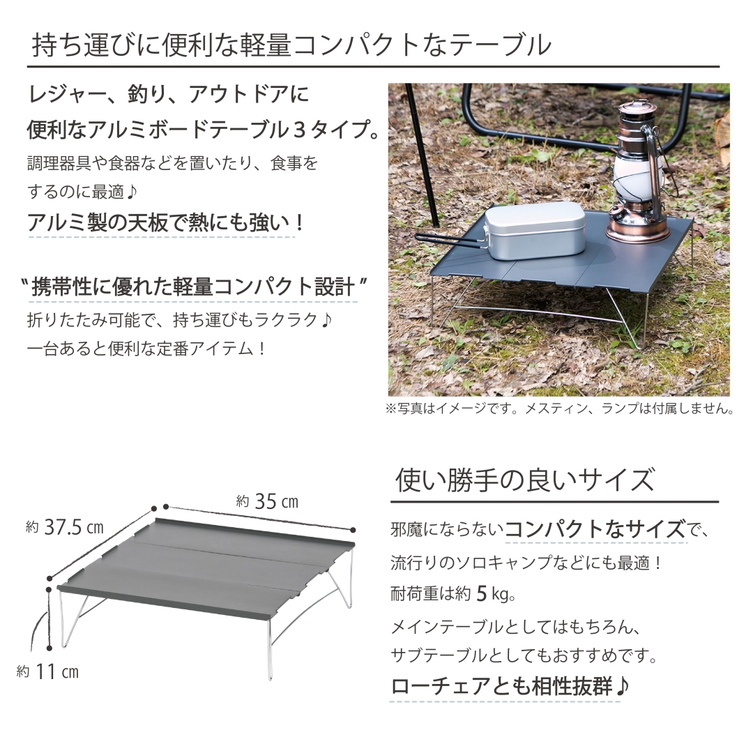 レジャー、釣り、アウトドアに便利なアルミテーブル