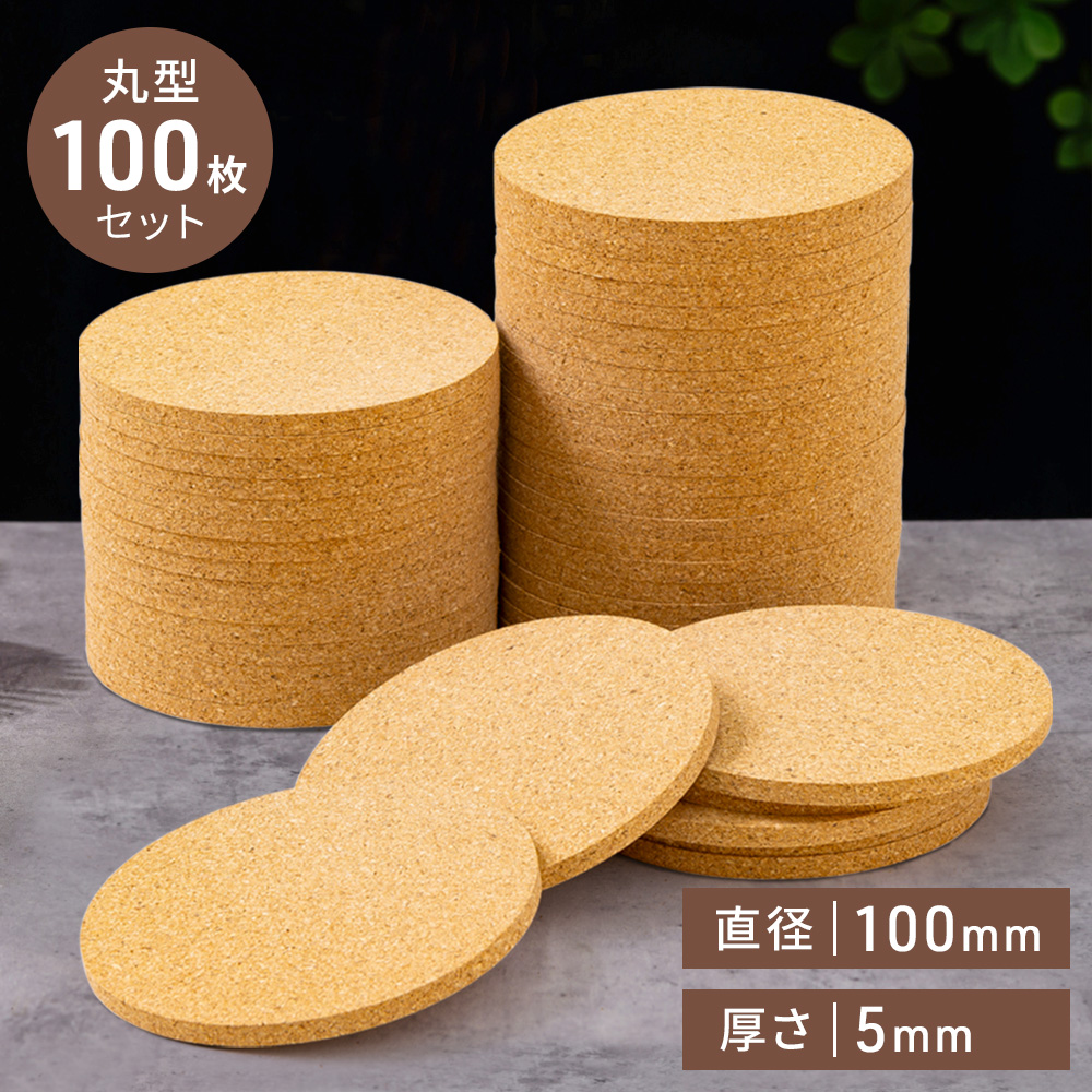 コルクコースター 吸水 おしゃれ コースター 100枚 セット 丸 耐熱性 業務用 大容量 コルク マグカップ 自宅 飲食店 カフェ レストラン 直径 10cm 厚さ 5mm