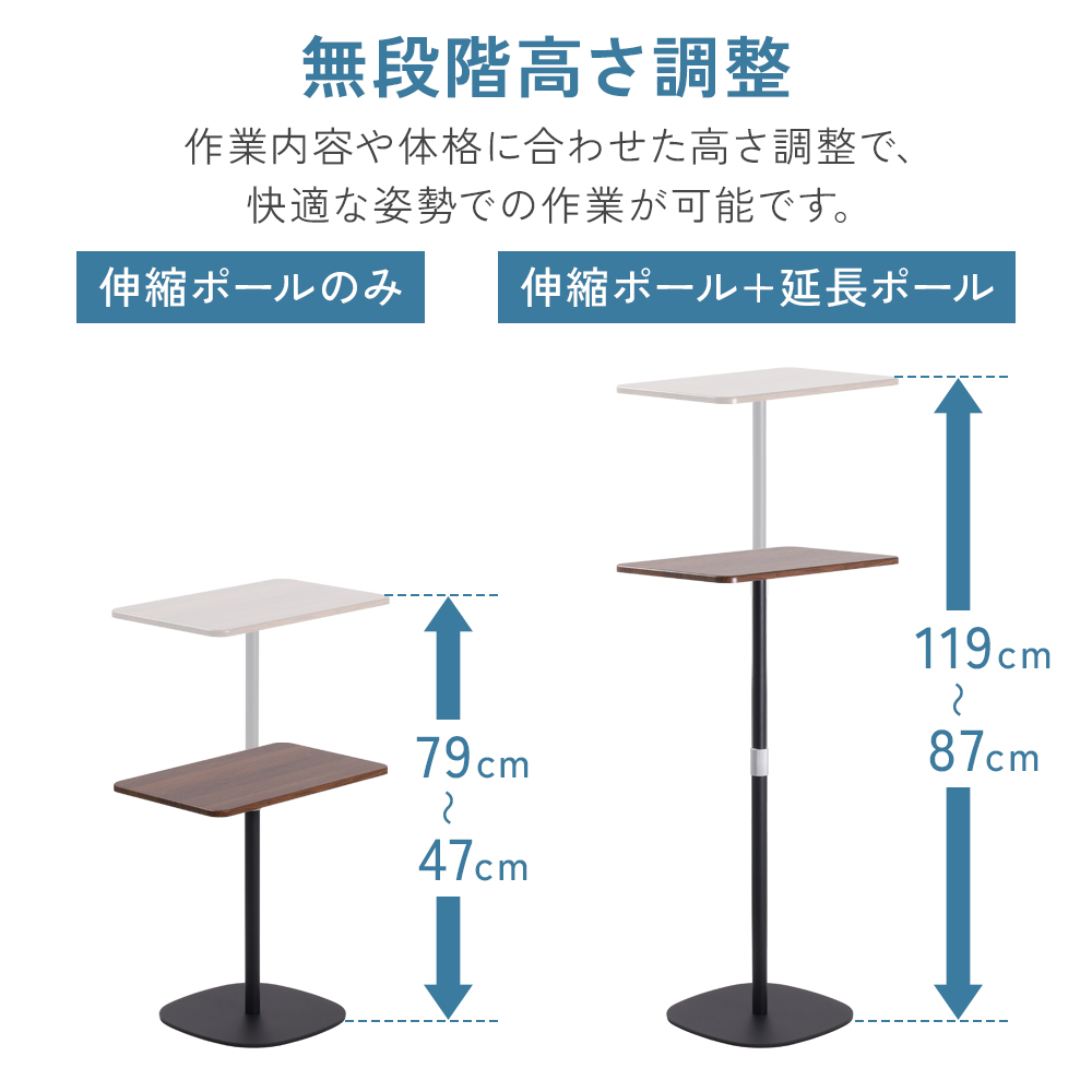 高さは約47cm、67cm、120cmと3段階に調節できます。