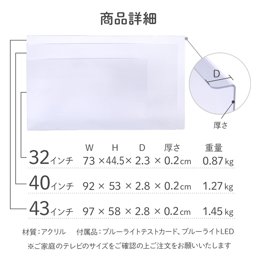 テレビ 保護パネル 32 テレビガード 赤ちゃん 液晶テレビ保護パネル ブルーライトカット 汚れ防止 傷防止 液晶テレビ TV フィルター アクリル製 40型 43型