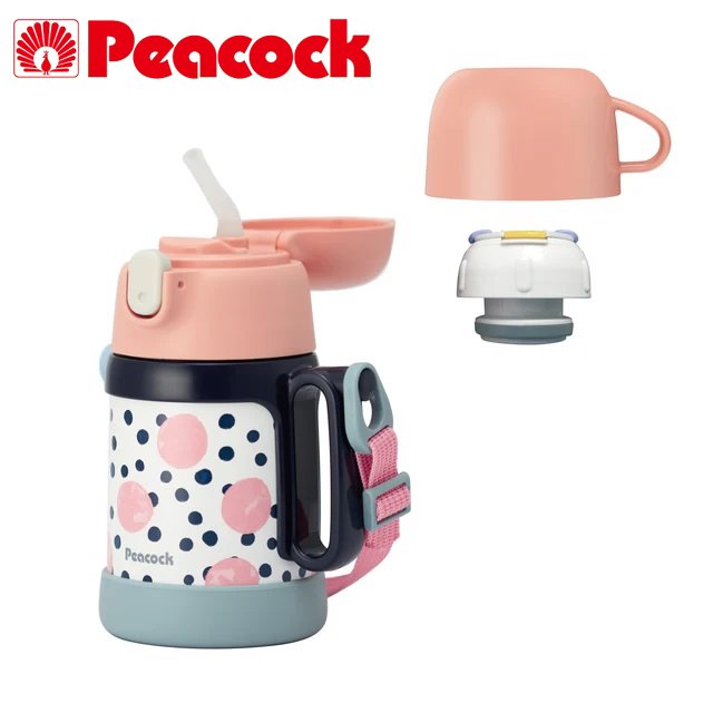 水筒 子供 ストロー コップ付き 400ml 2way ステンレス 保冷保温 マグ ピーコック 肩紐 肩ひも 魔法瓶 ベビー キッズ 3歳 2歳 1歳 ASK-W40