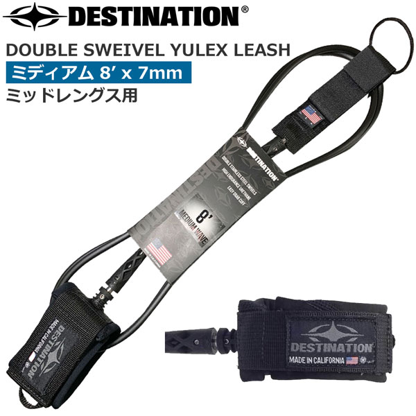 サーフィン リーシュコード デスティネーション DESTINATION DOUBLE SWEIVEL YULEX LEASH ミディアム 8’ x 7mm ミッドレングス用 #DESTINATION #デスティネーション #ジョエルチューダー