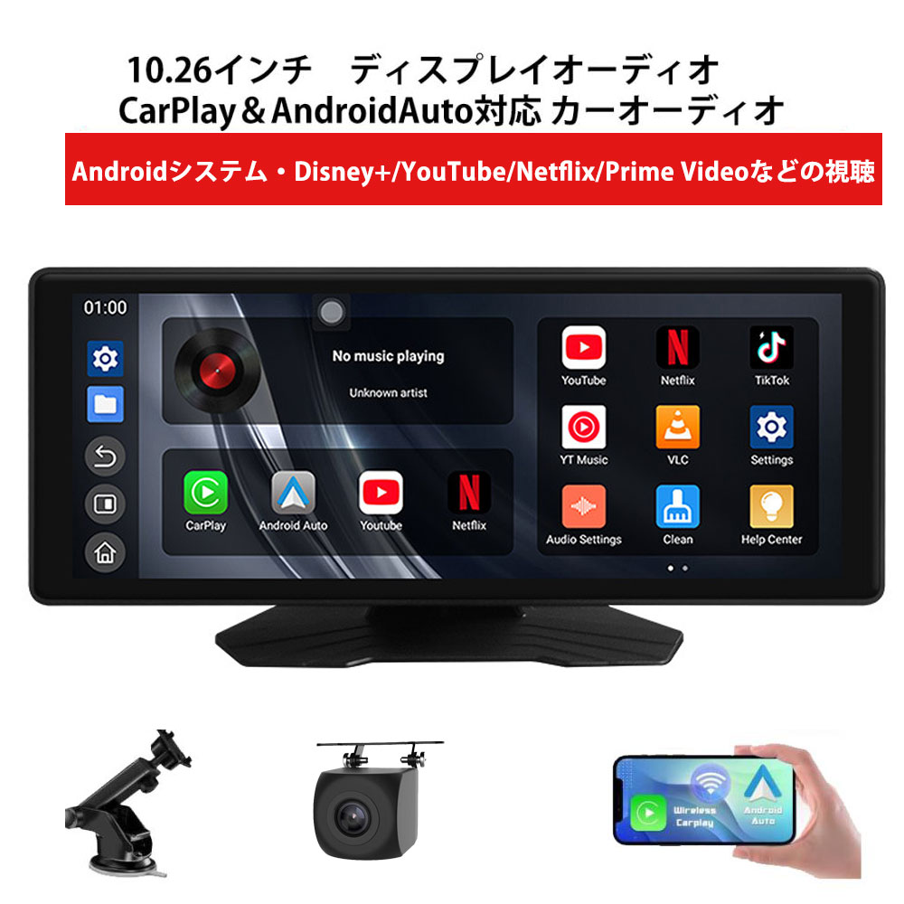 ディスプレイオーディオ CarPlay Android Auto 10.26インチ YouTube/Netflix 視聴 同時使用可 画面分割 デュアルWi-Fi Bluetooth バックカメラ付属