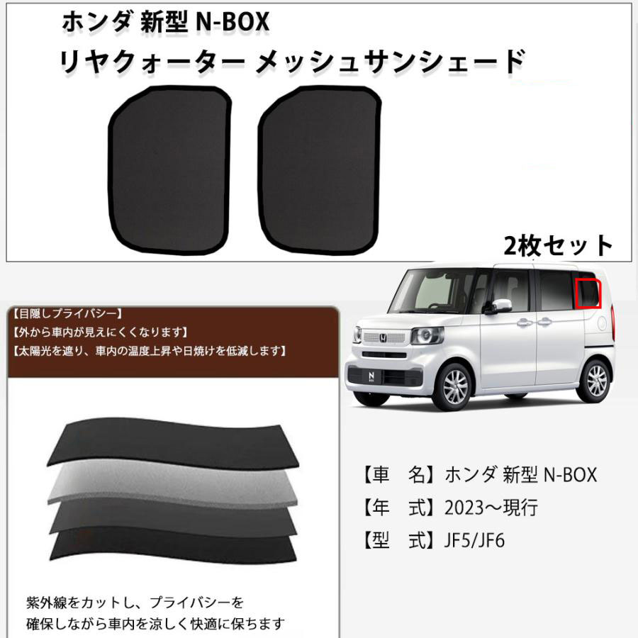 ホンダ N-BOX3代目 N-BOX JOY JF5 /JF6 互換対応 メッシュ リヤクォーター リアクオーター プライバシー保護 日除け/遮光 メッシュサンシェード 2枚セット
