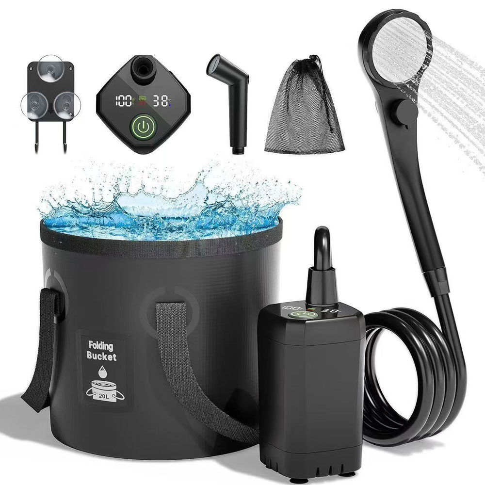 付属品:ポンプ、ホース、シャワーヘッド、USB-C充電ケーブル、ホルダー、ポーチ 折り畳み式20Lバケツ