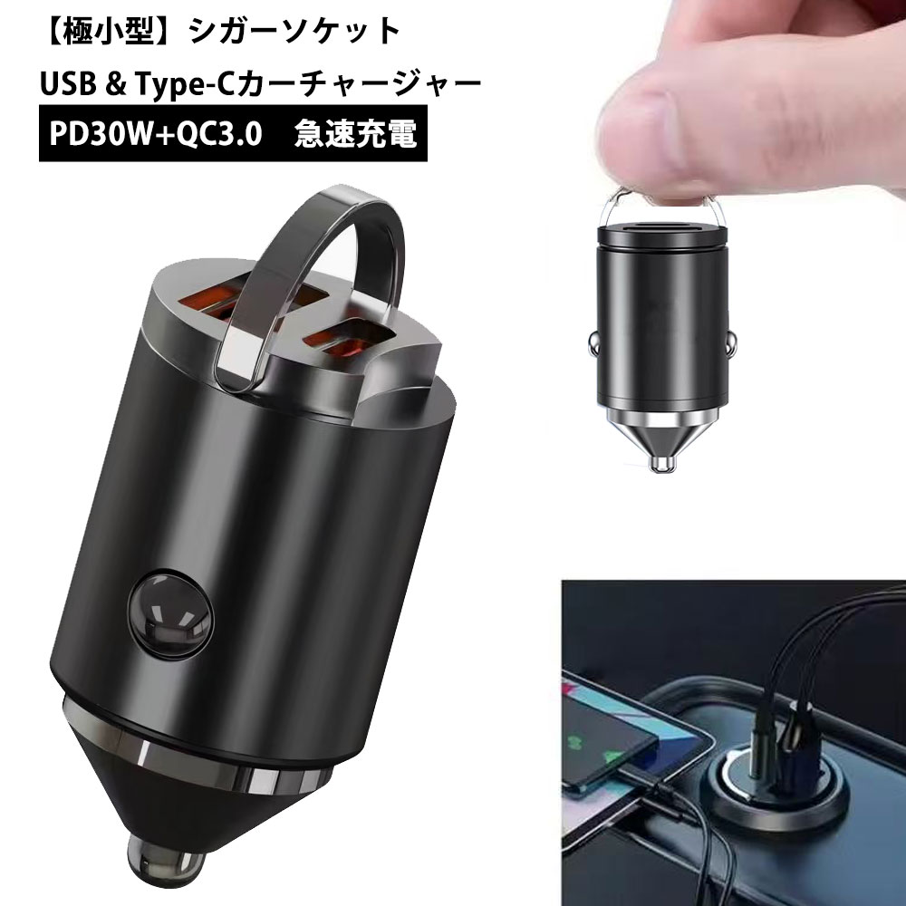 【極小型】シガーソケット USB & USB-C カーチャージャー PD30W+QC3.0 急速充電 Type C カーチャージャー 12V/24V車対応 しがーソケット USB