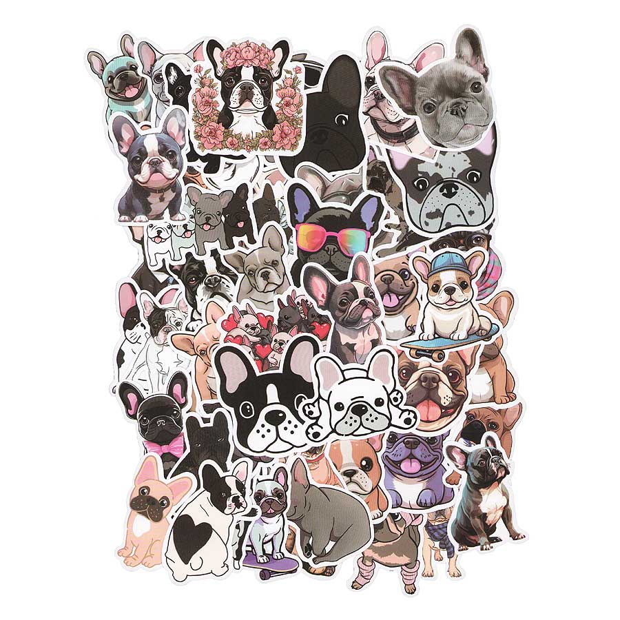 たっぷり50枚セット♪フレンチブルドッグのかわいいイラスト仕上げのステッカーです★色々な柄のフレブルちゃんがポップでかわいいですよね♪
