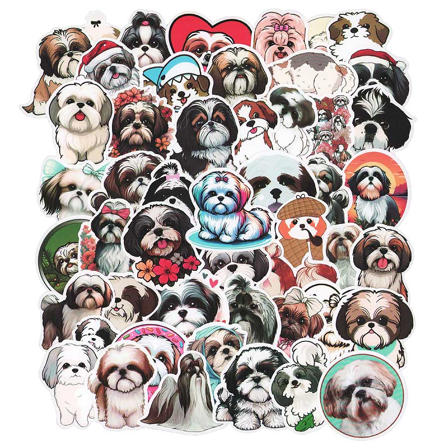 メール便送料無料♪たっぷり50枚セット♪シーズーのかわいいイラスト仕上げのステッカーです★色々な柄のシーズーがポップでかわいいですよね♪★詳しくは商品説明欄をご覧ください。シーズー 雑貨 ステッカー50枚セット コート紙製 犬 ペット シール グッズ