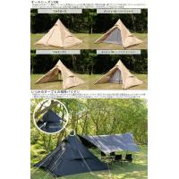 左右対称型で建てやすいピラミッド型ワンポールテント。初心者の方でもわかりやすいシンプルな構造です。前後出入り口はガバッと開きインナーテント(別売)はメッシュに切り替え可能。暑い季節も快適に過ごす事ができます。またフライシートにはスカートが付いておりフルクローズする事により冷気の侵入を軽減。肌寒い季節でもテント内を冷やしにくくする事ができます。使い方によって選べる様にするためインナーテントを付属していません。コットを使えば寝室とリビングが一体となったフロアレスのワンルームとして使えます。■カラー:タン■組立サイズ(外寸)約W300×D300×H210cm■収納サイズ約W60×D22×H22cm■重量(付属品含む)約6.5kg■収容可能人数:大人4名■材質[フライシート]150Dポリエステル(PUコーティング)[ポール]スチール[ペグ]スチール■最低耐水圧2000mm■セット内容:フライシート、ポール、ロープ(短)×4(※) 、ロープ(長)×4(※)、ペグ×20、ポール用収納袋、ペグ用収納袋、キャリーバッグ、タイベルト※テントに取付済 4580742232939