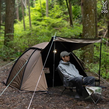 リュック一つで出かける徒歩キャンプ。軽さ重視の登山用テントでは物足りないけどオートキャンプ用は重くて嵩張る。そんな悩みに応えるためDODが「徒歩キャンにちょうどいい」を形にしました。 収納サイズはたったの32cm。軽量設計でバックパックで出掛けるソロキャンプにぴったり。ポールは別梱包で横付けOK。 ■カラー:ブラウン■組立サイズ(外寸)約W220×D215×H120cm■インナーサイズ約W220×D90×H120cm■収納サイズ[本体バッグ]約W32×D24×H14cm[ポールバッグ]約W45×D10×H4cm■総重量約3.2kg(ペグを含む本体2.5kg、ポール0.7kg)■最低耐水圧:テント2000mm、フロア5000mm■UVカットUPF 50+■セット内容:テント生地、トップシート×1、メインポール×2、天井ポール×2、ロープ(長)×4本(テントに取付済)、ロープ(短)×3本(テントに取付済)、ペグ×15本、ペグ用収納袋、ポール用キャリーバッグ、テント生地用キャリーバッグ、タイベルト×1■遮光率99%以上 4571697232723