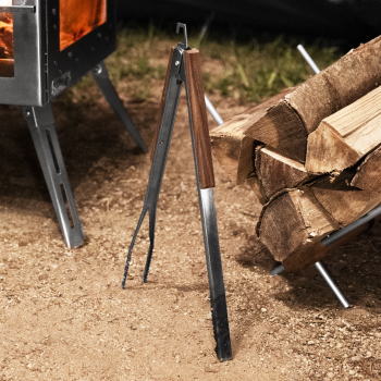 薪や炭を3点でブレずに薪や炭をしっかりと掴める先端分岐構造の自立式の火バサミ「ファイヤートング グラップル」。片側の先端が2点に分岐している事で薪や炭などを3点で掴む事が可能に。掴んだものがブレにくくなり安全かつ安定したハンドリングを実現しました。 かつなんと自立式で立っている姿もなんとなく愛おしく思えてくるような存在感があります。(地面に転がってどこいったかなぁなんて時もしっかりと立って自ら存在感をアピールしてくれます)閉じた状態でも開いた状態でも立つ自立式。閉じた状態をキープするロック機能も搭載。フック付きで薪ストーブやグリルに引っ掛けられるのも嬉しいポイント。先端のかぎ爪は火かき機能だけでなくダッチオーブン等の蓋を引っ掛けて使用する事も可能。先端部の一部にMt.SUMIのロゴが小さくあしらわれています。持ち手はウォルナットで手に馴染む一本。ぜひ火を安全に楽しむ道具としてお迎え下さい!■サイズW39.5×D3.7×H3.5cm■重量200g■材質:ステンレス、木(ウォールナット)■生産国:中国 4589804103149