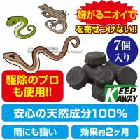 嫌がるニオイで寄せつけない!天然香料で寄せつけない忌避タイプなので死骸を見る事も近づく必要もありません。ポンとヘビの寄ってほしくない所に置いておくだけなので手を汚しにくく簡単です。雨・風に強く屋外使用にぴったりです。効果期間は長持ち約2ヶ月間です。■サイズ約縦3×横3×高さ1cm(1個あたり)■入り数・重量約15g×7個入■材質:木タール、木酢液、ニンニク、特殊セラミック■生産国:日本※ニオイの感じ方には個人差がございます。不快に感じられる場合がある可能性もございます。【ネコポスでのお届けとなります】送料無料ですが代引き発送はできません。発送後一部地域を除き2〜3日で投函となります。ネコポスには配達保証がありません。宅配便での発送をご希望の場合は店舗指定の送料770円が別途掛かります。その際はご注文時にご入力お願い致します。ご注文数によっては宅配便で発送させて頂く場合があります。他商品との同梱及び代引き発送、配達日時指定はできません。 4995312119501