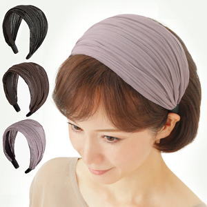 メイダイ カチューシャ プリーツカチューシャ ヘアバンド レディース 痛くない 幅広 白髪隠し 全3色 ブラック ブラウン モーブ 大人のふんわりカチューシャ