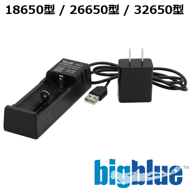 BIGBLUE USB 充電器 ダイビング 水中ライト リチウム バッテリー チャージャー ビッグブルー 水中カメラ チャージアダプター 18650型 26650型 32650型