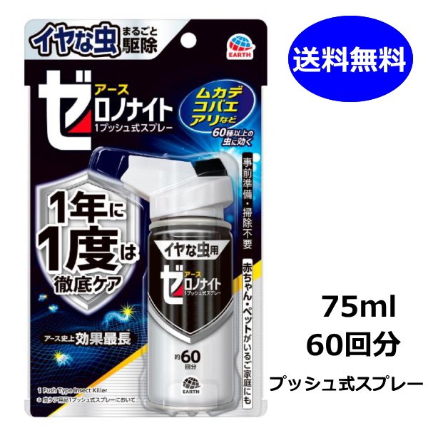 ●イヤな虫 ゼロノナイト 75ml 60回分 アース製薬 プッシュ式スプレー