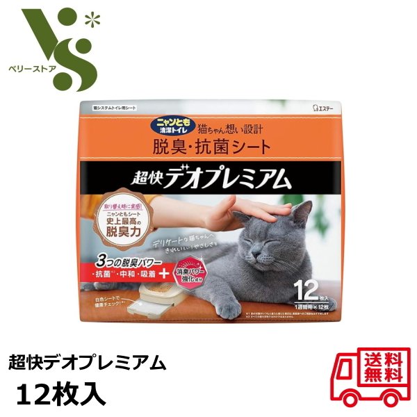 ニャンとも清潔トイレ 脱臭・抗菌シート 超快デオプレミアム 12枚入 エステー 猫トイレ シート 脱臭力 消臭 猫用 システムトイレ用シート にゃんとも