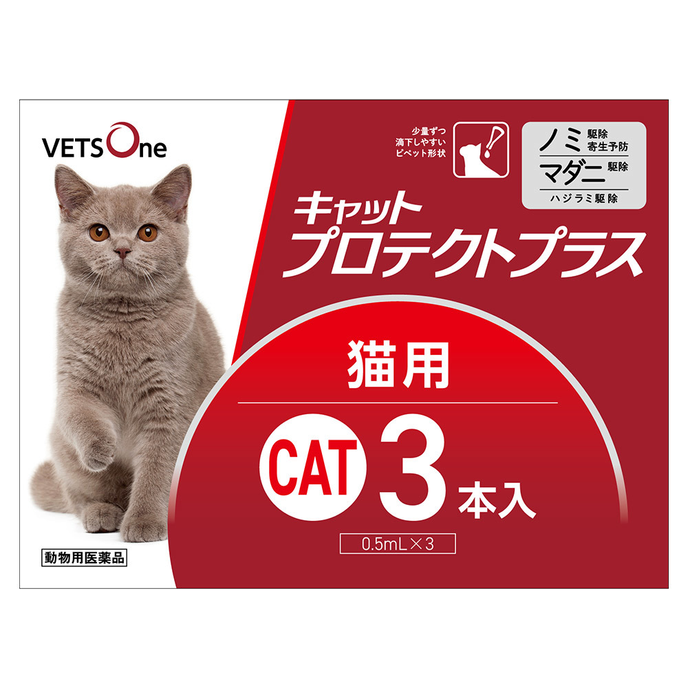 【沖縄県へのお届けは陸送でのお届けとなります。お届けまでに約一週間程度かかりますので、あらかじめご了承ください。】必ず製品の添付文書をよく読み用法用量を守って正しくご使用ください。キャットプロテクトプラスは猫に寄生するノミ、マダニ、ハジラミを駆除します。・ノミの駆除寄生予防効果1〜1.5か月間