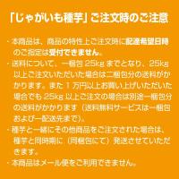 ※じゃがいも種芋の送料について、一梱包25kgまでとなり、25kg以上ご注文いただいた場合は二梱包分の送料がかかります。また1万円以上お買い上げいただいた場合でも25kg以上ご注文の場合は別途一梱包分の送料がかかります(送料無料サービスは一梱包および一配送先まで)。