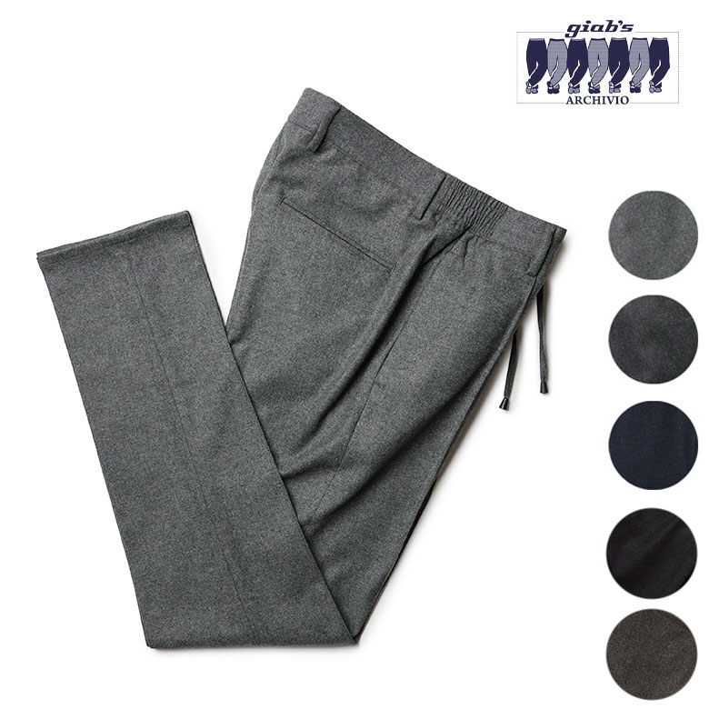 ジャブスアルキヴィオは、1953年にジャンカルロ・バレリーニ氏がイタリア・フィレンツェで創業したパンツ専業ファクトリー。60年以上、パンツのみを生産し続けた高い技術で、フェラガモ(Salvatore Ferragamo)、ヴァレンティノ(VALENTINO)、トムフォード(TOM FORD)など、メゾンブランドのOEMを請け負い厚い信頼を得ています。ベーシックなアイテムで留まることなく、バレリーニの孫であるコジモとロレンツォによって、前衛的なパンツブランドとして始動。ミラノ在住の中新井淳平氏をクリエイティブディレクターに迎え、クラシックの要素にトレンドを落とし込み、そこに先鋭的なエッセンスを取り入れています。ジャブスの代表格マサッチョ(MASACCIO)は、BEAMSなどのセレクトショップで別注がされるほどで、近年ではカットソーアイテムも展開するなど、多方面から注目を集めています。イタリアのパンツブランドはインコテックス(INCOTEX)、ベルウィッチ(BERWICH)、ピーティートリノ(PT TORINO)、ジーティーアー(GTA)、ジェルマーノ(GERMANO)、シヴィリア(SIVIGLIA)、ヤコブコーエン(JACOB COHEN)など数多くあり、イタリア人のパンツに対するこだわりが伺えます。