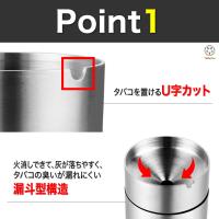 火消しできて、灰が落ちやすく、タバコの臭いが漏れにくい漏斗型構造とタバコを置けるU字カット!
