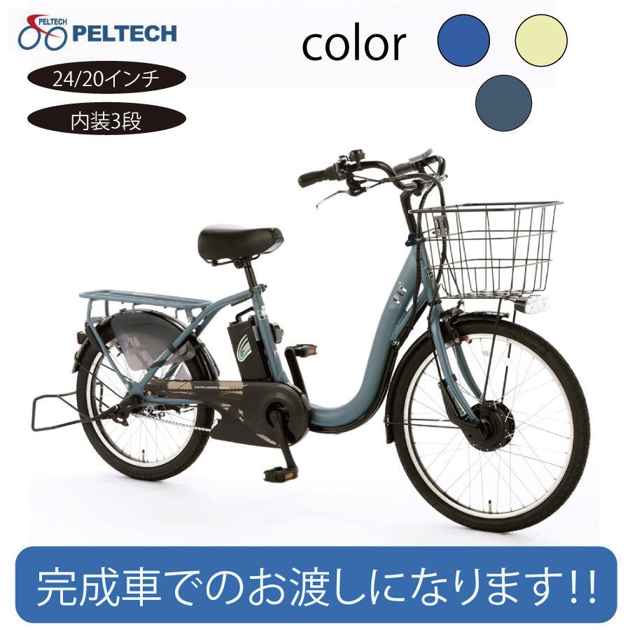 電動アシスト 自転車 アルミ 24/20インチ 子供乗せ対応電動自転車 シマノ 内装3段変速 PELTECH ペルテック TDH-408L 完成車 送料無料