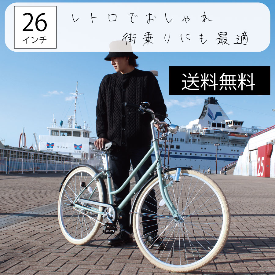 自転車 じてんしゃ おしゃれ シティサイクル レトロ 26インチ 通学車 通学 通勤 新生活 TRINITYplus 7部組み箱