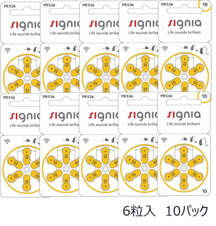 Signia シグニア 補聴器 電池 PR536 10 6粒入 10パック