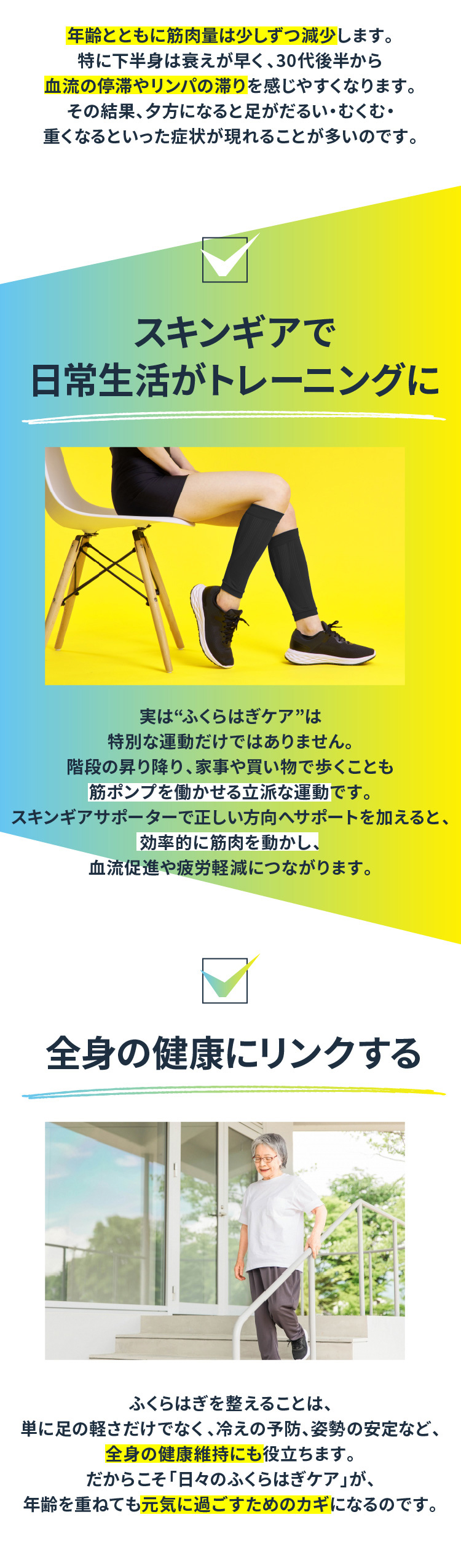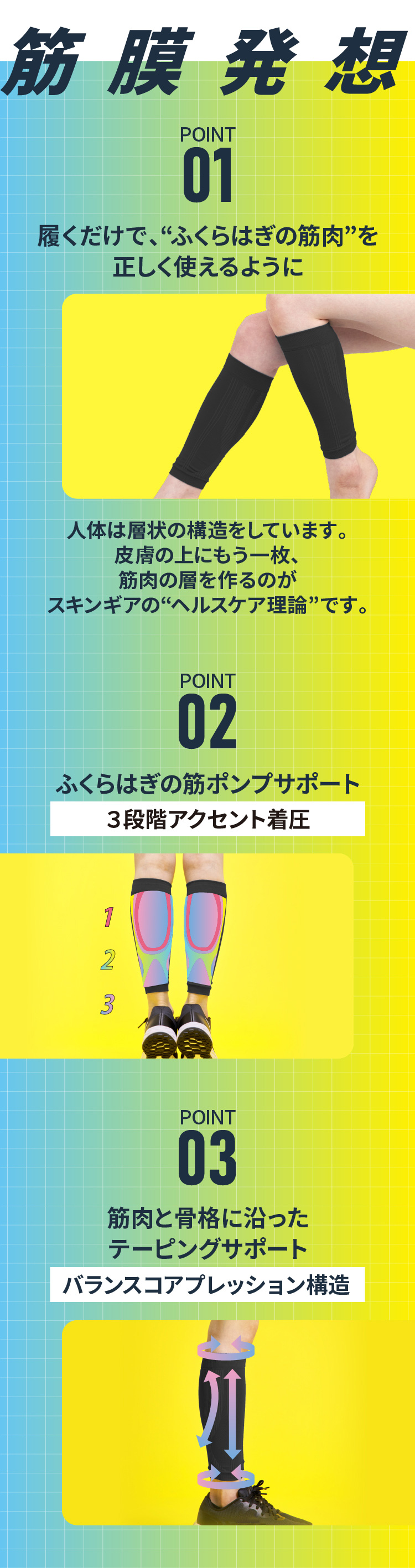 ふくらはぎ サポーター スキンギア 日本製 加圧設計 着圧 サポート むくみ 対策 筋膜発想 血流ケア 冷え対策 立ち仕事 デスクワーク SKIN GEAR レッグカバー