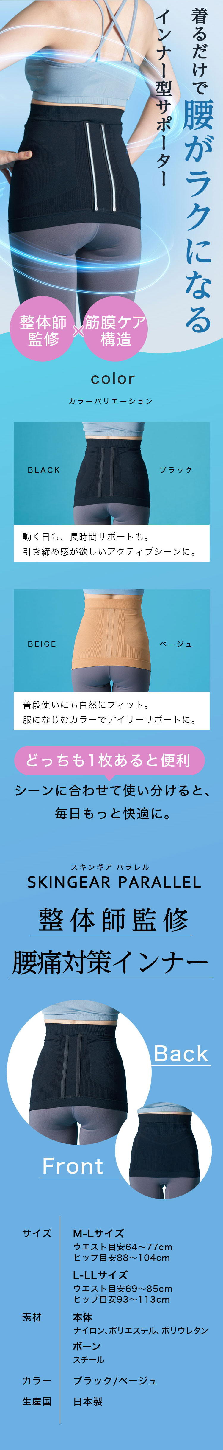 腰用サポーターSKIN GEAR パラレル 腰用サポーター ダイエット 目立たない お腹 引き締め 骨盤バンド 腹巻 スキンギア 産後ケア 姿勢サポート コルセット