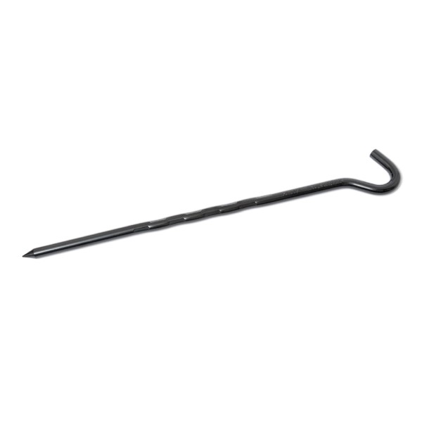 風を受けやすい大型タープや大型テントでもがっちり固定できる最高強度を誇るペグです。直径9mmのスチール棒をプレスすることでさらに強度を上げることに成功しました。ハンマーを打ちやすい形状に上部を曲げ、力を逃がすことなく効率よく伝える構造が特徴です。万が一、打ち損ねても曲がりにくい強度は、テストデータからも実証済みです。
